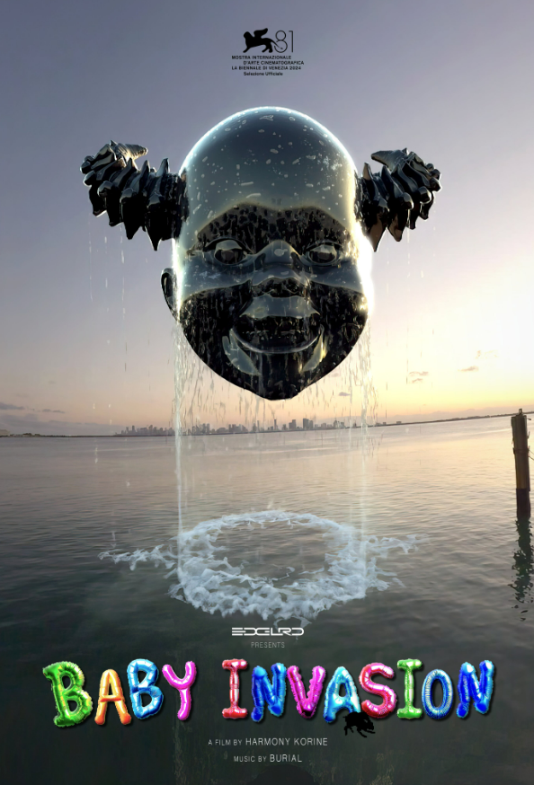 Après le très halluciné Aggro Dr1ft à Venise en 2023, Harmony Korine prolonge l’expérience happening avec Baby Invasion à la même Mostra en 2024, le film y étant présenté hors-compétition. Ce que l’on sait pour l’heure, c’est qu’il s’agit d’un thriller interactif « proche d’un film d’horreur à certains égards, proche d’un jeu de tir à la première personne, raconté principalement à travers des GoPros et des images de caméras de sécurité ». La musique sera assurée, dixit l’affiche ci-dessous, par l’artiste britannique Burial.