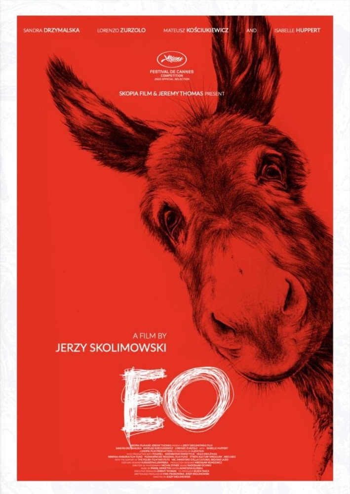 EO (Hi-Han) suit le parcours d’un âne de cirque qu’on retire à sa jeune propriétaire (Sandra Drzymalska en nouvelle Anne Wiazemsky) à la demande d’association de défense des animaux. Séparé de la seule personne qu’il aime, notre âne sera trimbalé à-peu-près partout à la surface du globe, témoin souvent impuissant des plus effarantes stupidités humaines, dépliant ainsi un effrayant inventaire à la Prévert de nos cruautés contemporaines… Et vas-y que je te tape un petit foot et plein air, que je passe boire un verre au troquet du coin, et vas-y que je me fais pourchasser par des fafs et que je croise une jeunesse ignare pour qui le cheval, “c’est d’abord du salami”