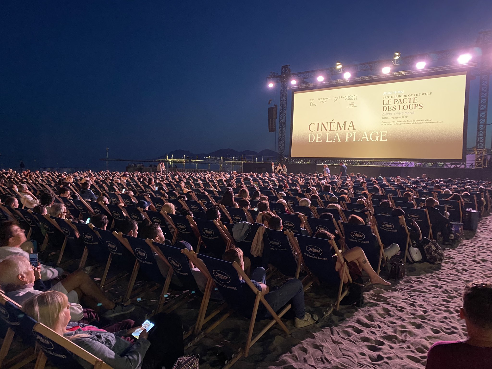 PS. Clin d’œil au feu magazine Starfix ce jeudi soir au Festival de Cannes avec la projection de la version restaurée du Pacte des loups de Christophe Gans au Cinéma de la plage (photo prise par notre ami Patrice Girod). On vous conseille de (re)lire la super interview de Christophe Gans réalisée par Gérard Delorme.