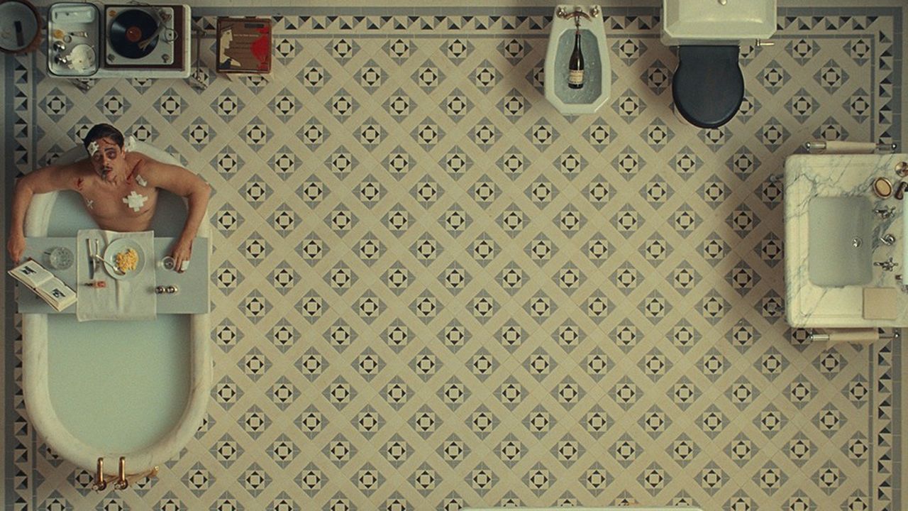 Alors, grand Wes ou petit Wes ? Depuis son retour à Cannes en 2021, le cinéaste lollipop-texan a toujours eu le malheur de passer en plein milieu de sélection. Passablement émoussé par un son rythme de croisière festivalier, le badgé presse ne pouvait que laisser échapper beaucoup, mais alors beaucoup, d’informations en route. Revoir à Paris, dans des conditions décentes, le French dispatch ou Asteroid City était presque devenu un trope. En nette rupture avec ses deux prédécesseurs, ce Phoenician Scheme délaisse le vertigineux mille-feuille choral pour ne laisser apparaître que trois acteurs en guise de cast principal : Benicio del Toro, Mia Threapleton (la fille de Kate Winslet aperçue dans Le Jeu de la reine de Karim Aïnouz) et Michael Cera, un cercle plus restreint qu’à l’accoutumée qui renoue avec l’esprit Darjeeling. Le film ne se laisse d’ailleurs pas prier pour placarder, punaises à la main, des motifs assez peu vus dans l’univers du cinéaste : un goût pour les armes réparti entre grenades et mitraillettes, un générique d’entrée égrené sur un plan fixe garanti sans effet de manche, un perso déchiqueté en deux et un visage tuméfié en gros plan, auxquels la maison de poupée andersonienne s’était jusque-là toujours refusée (du moins depuis le dépressif Famille Tenenbaum). Voilà pour les motifs esthétiques, dont on sait qu’ils ne sont pas rien chez le cinéaste dit-dandy.