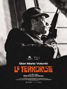 Côté patrimoine toujours, Le terroriste (1963) de Gianfranco De Bosio, connu jusque-là uniquement par les couche-tard du Cinéma de minuit, est à voir: ce Gian Maria Volontè movie où l’on croise aussi nos fraîchement disparus Philippe Leroy et Anouk Aimée raconte les activités d’un groupe de résistants dans la Venise occupée et brumeuse de 1944, et dans un style qu’on pourrait qualifier de trait d’union manquant entre Rossellini et Rosi (« Je n’ai pas voulu faire une épopée révolutionnaire mais plutôt un film de réflexion idéologique et morale »). D’attentat en attentat, le partisan Volonté se met à inquiéter sa hiérarchie, et quand les nazis zigouillent des otages en représailles, les différentes forces politiques du Comité de libération nationale, anticipant là de quelques décennies le NFP, sont très divisées quant à la stratégie à suivre. C’est manifestement ce film, le premier à ébranler le mythe de l’unité de la Résistance italienne, qui va mettre Gian Maria Volontè sur orbite et qui va amener un jeune cinéaste intrépide nommé Sergio Leone à s’intéresser au bonhomme…