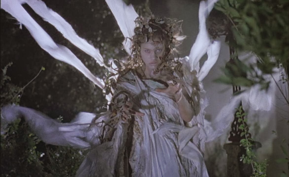 Au détour d’un enterrement, Francesco tombe en effet raide dingue d’une veuve pulpeuse, tendance Jessica Rabbit des tombeaux (le mannequin Anna Falci, qu’on verra ensuite dans les téléfilms de Noël de Lamberto Bava). C’est le début des emmerdes, bien évidemment. Comme pour trancher radicalement avec le cinéma de ses papas (Amato, Fulci, Argento, Lenzi…), Soavi oublie l’imagerie de ses pairs et joue sa propre symphonie déglinguée, qu’il élabore comme un poème bizarre voire comme un conte picaresque où il est impossible de savoir ce qui va surgir à la bobine suivante. Un goût inopiné pour le grotesque et le non-sens qui n’est sans doute pas sans lien avec sa collaboration avec Terry Gilliam, puisque Soavi fut assistant-réalisateur sur le naufrage (mais quel tournage de Crazy Terry ne l’a pas été?) des Aventures du Baron de Munchausen, allant jusqu’à lui repiquer sa Grande Faucheuse ailée.
