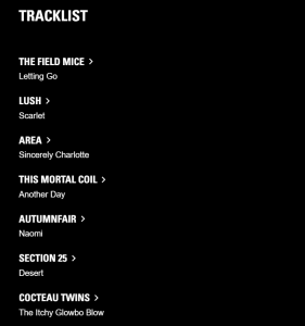 Et l’on conseillera aussi aux lecteurs de ce site de se précipiter sur une playlist non moins éblouissante, composée par Mil Townley. Une succession extraordinaire de chefs-d’œuvre shoegaze et new wave intitulée 80’s dream pop dont on vous laisse ci-dessous la tracklist.