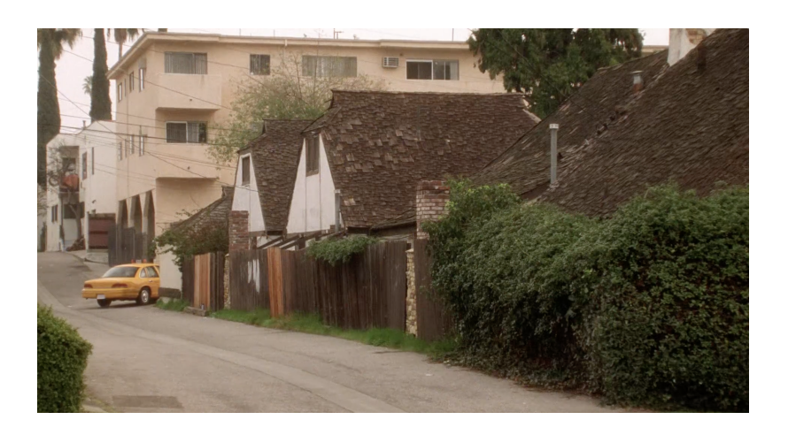 On avait quitté Rita sur Vista Street, alors qu’elle marchait en direction du sud, vers La Brea. Depuis, elle a fait son bout de chemin, et a rejoint les appartements de Coco. Du moins, elle est allée jusqu’à l’entrée de l’immeuble. Dans le film, on peut la voir qui s’endort devant les portes de la maison, planquée dans les buissons. Le lendemain, Betty la découvre sous la douche, alors qu’elle vient tout juste d’emménager. Elle ne le sait pas encore, mais il s’agit là de son avant-dernière demeure dans la cité des Anges. En arrivant chez Coco, Betty a toujours ce regard excessivement émerveillé, et ce, même en voyant une merde de chien dans la cour.