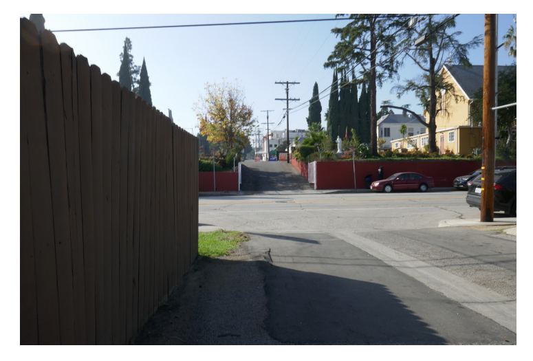 Rita et Diane ont donc pris un taxi, et m’ont rejoint à Silver Lake. Elles sont passées par Beverly, puis Griffith Park Boulevard. Le même chemin que j’ai emprunté en voiture. Dans le film, la caméra filme la route pendant un instant, avant de dévoiler les appartements de Sierra Bonita. Un hameau fait de bois et de granite, vieux de cent ans, et où Walt Disney avait l’habitude de travailler. Chaque appartement ressemble à une petite maison, coincée dans le temps. Les souvenirs de deux univers fantastiques différents entrent en collision. Et l’imaginaire collectif est à cheval entre deux mondes. En faisant le tour, à pied, on se rend compte que Rita et Diane sont effectivement passées par derrière, pour entrer dans la résidence. Ce que j’ai hésité à faire, d’ailleurs, pour aller prendre mes photos. Devant le 2900 du Griffith Park Boulevard à Silver Lake, une Lincoln ressemblant étrangement à la limousine des Castigliani était stationnée. Toutes vitres teintées. C’était la deuxième fois du séjour que je voyais cette voiture.