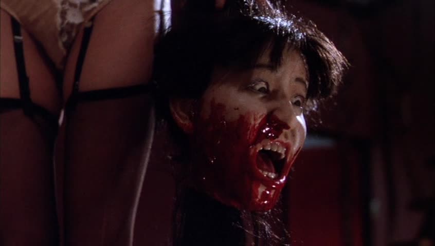 Outre son atmosphère évoquant le bis italien (jusque dans l’excellente b.o à la Fabio Frizzi), ce spectacle d’un grand raffinement n’hésite pas à transformer ses meurtres en véritable rébus visuel, faisant apparaître des images subliminales n’ayant aucun rapport avec l’action, mais créant un langage visuel stimulant et bizarroïde. Très chaos. Entrails of a Virgin ne dément jamais ses intentions, à savoir un film de cul douteux doublé d’un splatter très très sale, comme cette scène mythique où une protagoniste devenue folle et nécrophile (ne demandez pas pourquoi) s’accouple avec le monstre des bois. Dans un sauna crapoteux, couverte de sperme et en pleine extase (Moto! Motoooooooooooooo!), elle se verra récompensée d’un fist mortel qui donnera le titre du film. Ravissant. Bien sûr, il faudra encore plein de courage à la final girl, qui acceptera, elle aussi, son sort dans une dernière image tout droit venue des enfers. Un vrai film dégénéré.