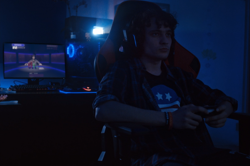 Un court réussi sur un Quentin Dolmaire en très gros plan ne maîtrisant plus ses pulsions devant la panoplie d’écrans qui servent de déco à sa chambre. Prêt à tout pour gagner au poker en ligne, il installe une intelligence artificielle qui doit supposément le rendre imbattable. Mais il se fait rapidement repérer. Traqué par des avatars avec plus d’XP que lui, Pietro va peu à peu perdre pied avec la réalité, s’enfonçant dans un thriller paranoïaque où le moindre pop-up devient propice au frisson. Une œuvre originale qui a pas mal divisé mais qui a évoqué bien des choses à l’auteur de ces lignes qui, s’absorbant lui aussi parfois des heures dans des parties FIFA avec Kylian en pointe, ne sait plus toujours bien qui il est…