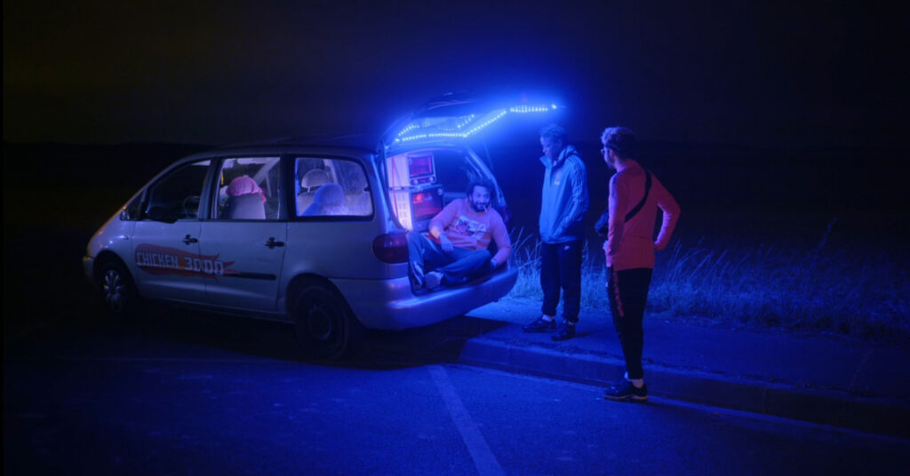 Ils paradent en claquettes-chaussettes, récupèrent par terre des objets venant d’un autre monde, et se font livrer des burgers répondant aux doux noms de Cristiano (Signature) ou de Neymar-steak-boursin quand vient l’heure du petit creux éméché de fin de soirée. Eux, c’est Leslie et Renard, engagés malgré eux dans une exploration de la Grande Couronne après que le RER les menant à Saint-Rémy-lès-Chevreuse les empêche de retourner vers la capitale suite à un problème technique. Le prétexte à un buddy-movie bariolé arpentant les zones périurbaines, ces étranges espaces plus si ruraux contaminés par la construction de centres commerciaux et d’extensions de lignes de métro. Si le film est plus réussi sur son abord comique que sur son envers mélancolique, il convoque un éloge de la lose et du rire grassouillet qui nous situe tout de suite du côté de la comédie américaine et de ses plus magnifiques avatars (Superbad, Apatow, Farrelly et cie.) Des références qui, dans notre bouche, sont évidemment une bonne chose. Un premier long remarqué à l’ACID qui nous donne envie de suivre avec attention la carrière du jeune réal/acteur/scénariste aux jackets couleurs Haribo, seulement 25 printemps au compteur! Le retour en grâce d’Ecce Films!