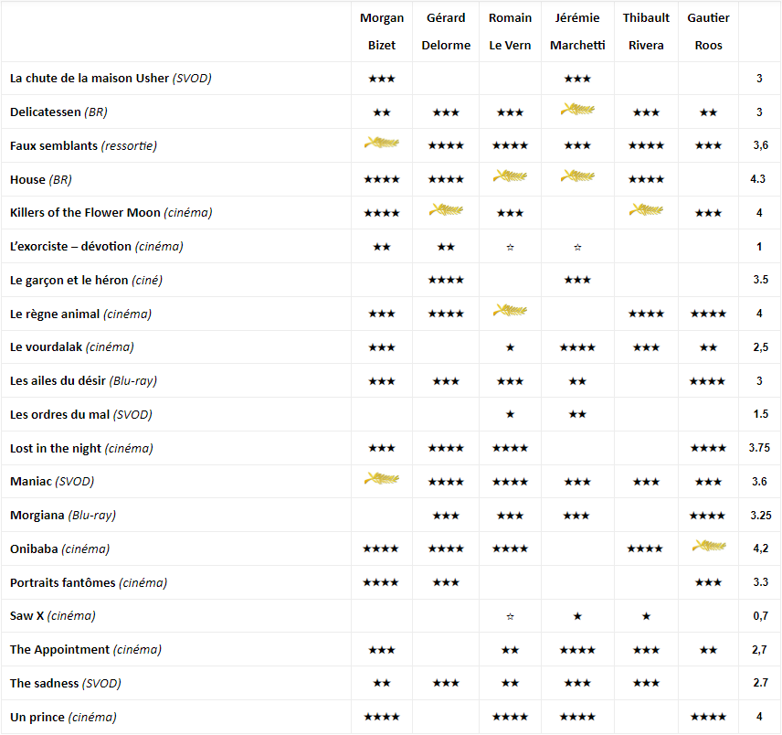 | Killers of the Flower Moon (cinéma) | ★★★★ | ★★★ | ★★★ | 4 | |||