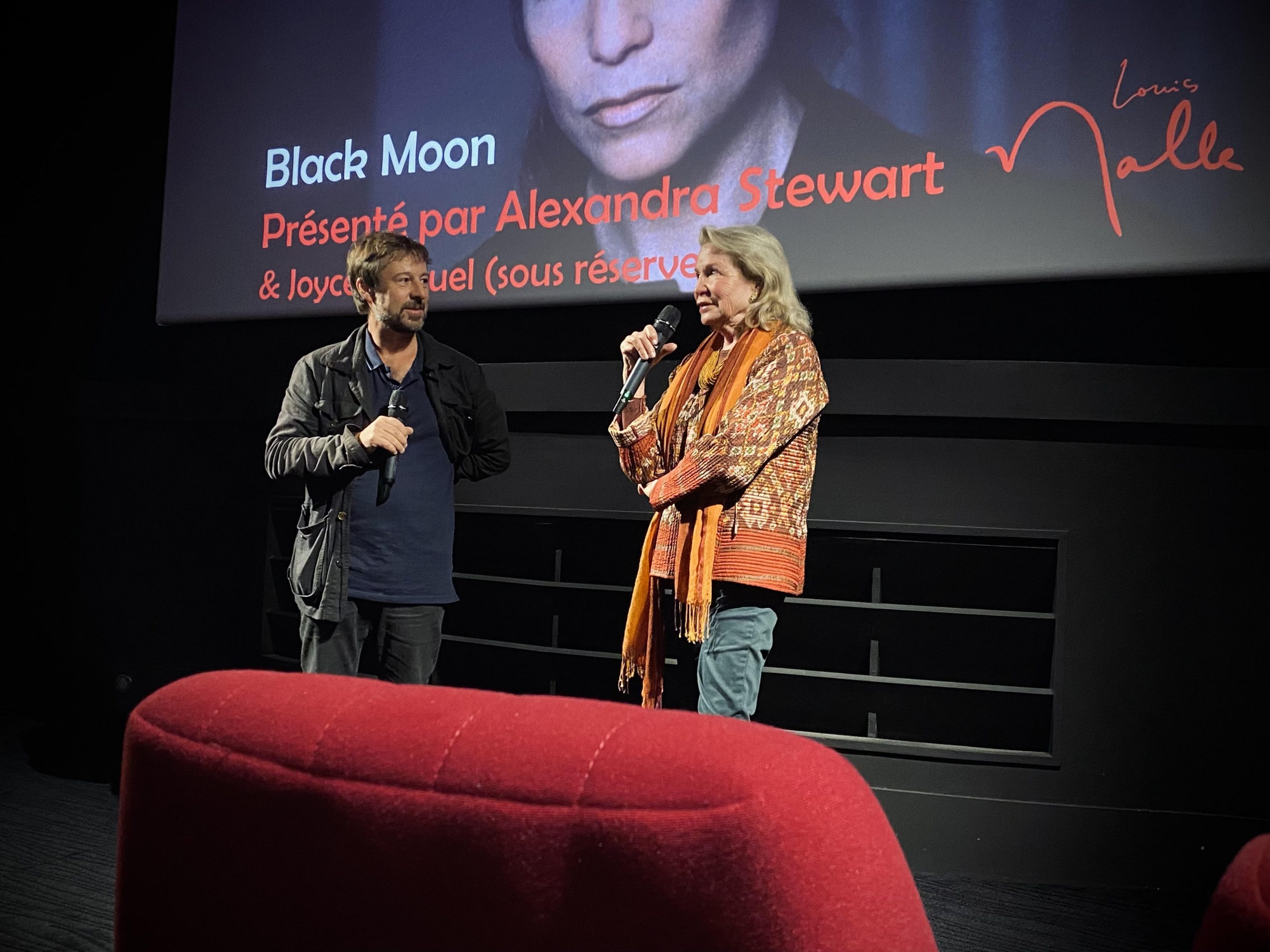 Non, les dialogues étaient écrits, sans improvisation. Mais bon, moi, je ne dis rien dans le film! Ce qui est un peu un contre-emploi: dans la vie, je parle tout le temps (ma fille Justine a l’habitude de présenter Black Moon en disant: « Vous allez voir le seul film dans lequel ma mère est muette! »)