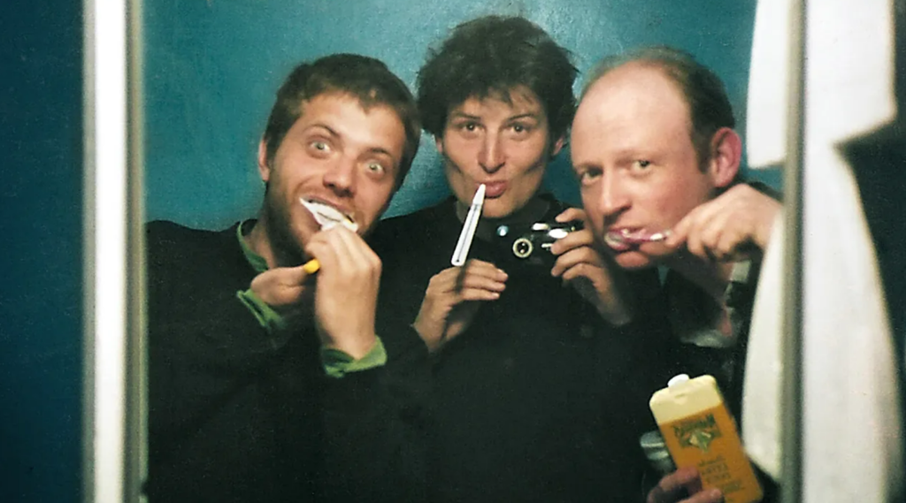 Claude Baechtold: D’abord, je les ai regardées en me disant que ça allait être un sacré travail! L’ami à qui j’avais confié les cassettes, non seulement il les avait perdues, mais il ne les avait pas dérushées. Donc, je me suis retrouvé face à 40 heures de cassettes. J’ai dû dénicher un lecteur MiniDV, brancher tout ça sur mon ordinateur avec des vieux câbles FireWire. Ce matériel, c’était le top du top il y a 20 ans, mais plus maintenant… (il rit) Une fois sur deux ça ne marchait pas, j’ai mis un mois entier à tout dérusher. Et au départ, je ne pensais pas qu’il y avait de quoi faire un film: les images ne parlaient pas assez d’elles-mêmes, il manquait des morceaux à cause des moments où je n’avais plus de batterie. Et puis la vidéo des années 2000, c’est beaucoup glamour que du Super8 ou du 16mm. C’est très brut, moins engageant.