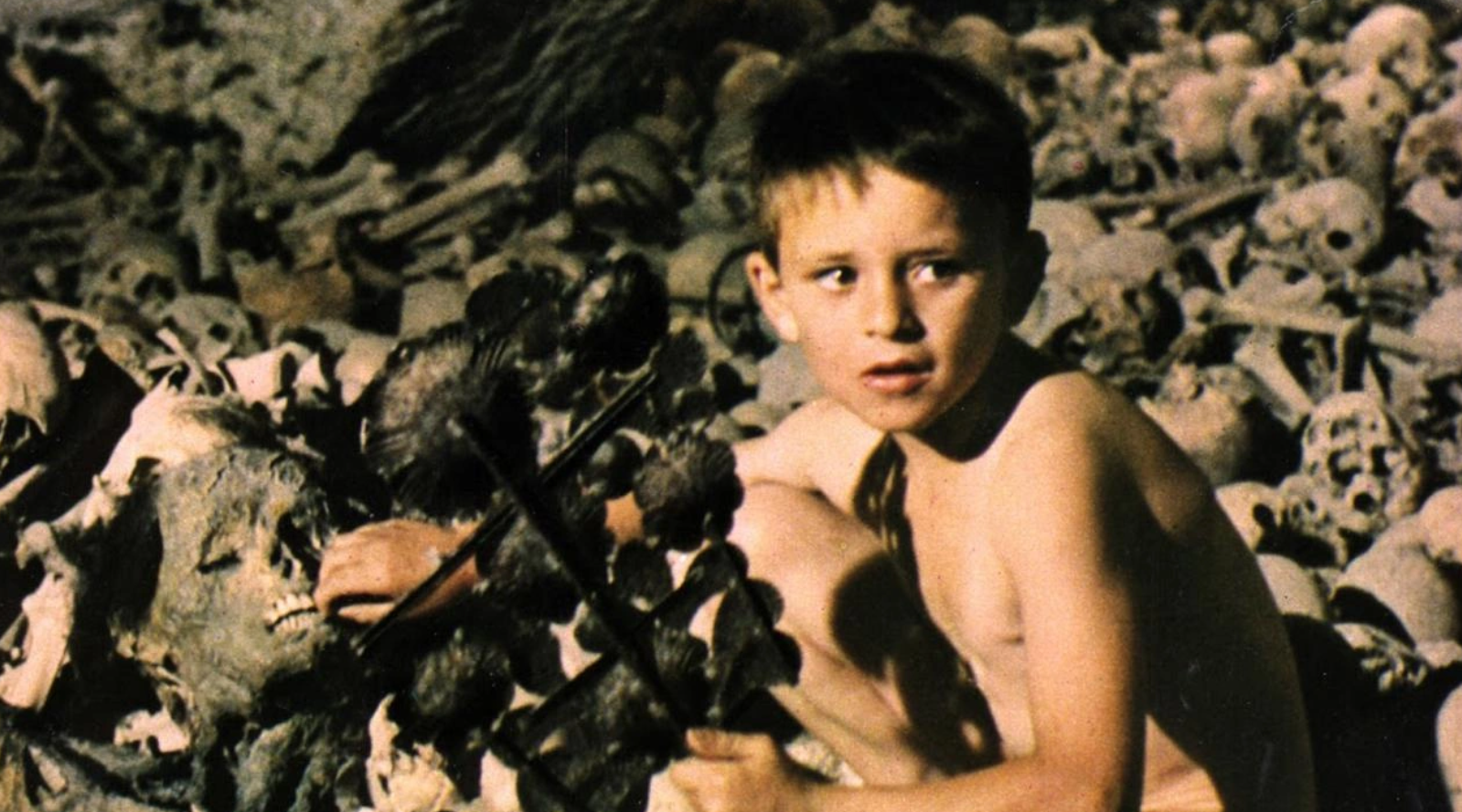 Curieusement, Arrabal ne semble plus possédé par l’envie dévorante d’aligner les saynètes surréalistes et réalise du coup, enfin, un vrai film historique, racontant très précisément l’invasion des troupes de Franco à travers le pays et la riposte communiste. S’octroyant plusieurs points de vues (des paysans en passant par les fascistes, l’école, les bourgeois et les outsiders) pour ne rien laisser au hasard quant à la situation de cette période maudite. En passant par l’Italie, le réalisateur collectionneur de lunettes en plastiques se serait-il pris pour Roberto Rossellini ou Bernardo Bertolucci? Buvez un peu d’eau, on ne calme pas un Arrabal comme ça, d’un coup de baguette magique. Oreille géante dévalant une colline, corrida humaine (avec des nains en guise de taureau!), sexe calciné dans une ceinture en fer forgé, exécutions à la chaîne, fête aux blasphèmes (en guise de mépris au clergé motivant les troupes de Franco, la statue du christ se voit tour à tour explosée, sucée, souillée d’urine ou barbouillée de sperme), mont Golgotha d’un genre nouveau…