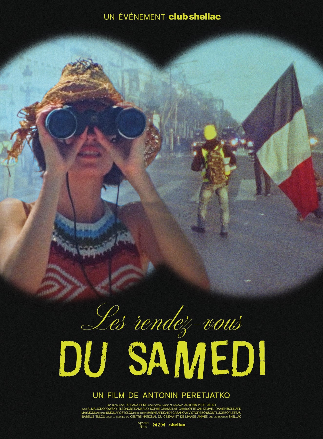 Après Les démons de Dorothy, de Alexis Langlois, le Club Shellac poursuit ses sorties spéciales de films d’auteur (simultanément, des séances en salle à Paris et en Province en présence du réalisateur, une sortie DVD et une diffusion en streaming exclusif sur la plateforme). Le prochain sur la liste sera Les rendez-vous du samedi, un film signé Antonin Peretjako (La fille du 14 juillet), présenté en 2D et en 3D, décrit comme un poème visuel tourné en 16mm, revenant sur le mouvement des Gilets jaunes à travers des images de révoltes et de vie quotidienne jusqu’au confinement sanitaire. Soit, selon le synopsis, l’histoire de Pierre Bolex, bientôt 41 ans: « A l’école, lorsque nous étions petits, pour fêter le bicentenaire de la Révolution, on nous avait déguisé en révolutionnaires. Aujourd’hui nous sommes à l’âge adulte », est-il écrit.