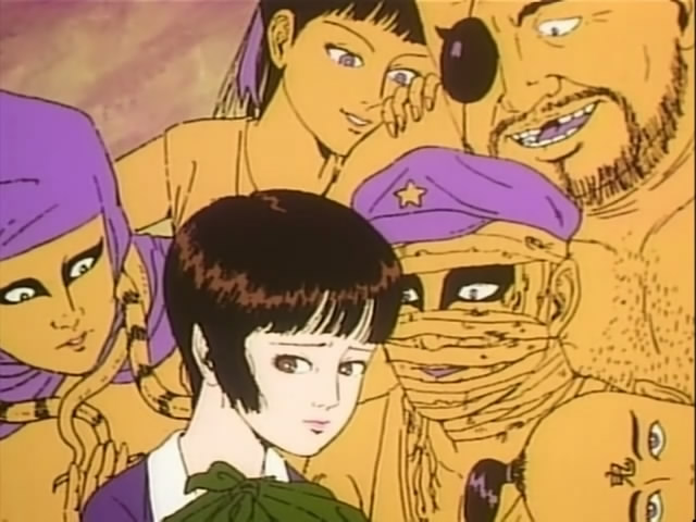 On ne remerciera jamais assez l’éditeur Le Lézard Noir pour éditer continuellement les chefs-d’œuvre infernaux de cet auteur au-delà du chaos. Mais vient la grande question: Maruo est-il adaptable? Raisonnablement, tout porte à croire que non. Pourtant, car c’est bien le sujet ici, la seule grande tentative de transposition fut un succès: en 1992, La jeune fille aux Camélias se voit devenir Midori, le temps d’un anime qu’on imagine longtemps corseté par la censure, connaissant une distribution méga-secrète avant de ressusciter en festival. Un spectacle insensé que l’on doit à Hiroshi Harada, personnage mystérieux qui avait déjà signé un court d’animation expérimental particulièrement malaisant répondant au doux nom de Nidoto mezamenu komoriuta, où il abordait sans détours le bullying et l’urbanisme pourrissant.