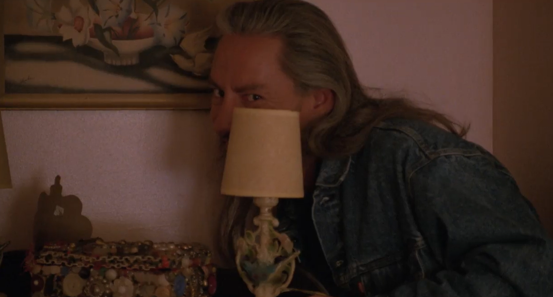 « Je voudrais proposer ces deux plans, parce qu’ils se répondent et qu’ils m’ont à peu près autant terrorisée quand j’étais encore jeune ado… Le premier, c’est bien sûr un plan sur Bob dans Twin Peaks: Fire Walk With Me, où il est tapi derrière la commode dans la chambre de Laura. Elle le découvre en ouvrant lentement la porte, avant de pousser un cri d’effroi, suivi du cri de Bob lui-même, encore plus effrayant. Ce plan m’a fait faire de nombreux cauchemars et m’a maintes fois conduite à squatter la chambre de mes frères pour éviter les terreurs nocturnes. Le deuxième, c’est le plan sur la personne cachée dans l’arrière-cour du Winkie »s dans Mulholland Drive. J’étais un peu plus grande, mais j’ai retrouvé la même sensation: pas une écriture de « jump scare » car dans les deux cas, la découverte est montée de manière assez lente. Et pourtant, on n’en voit juste assez et surtout pas trop, pour avoir la place d’imaginer le pire. Tout l’art de David Lynch. »
