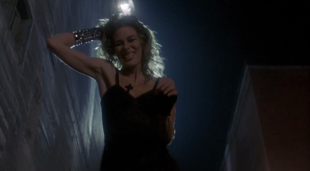 Plus sérieusement, et malgré cette confusion linguistique, Nomads compare nos blousons noirs et autres punk-goths vampiriques à des nomades nouvelle génération. Ce qui s’apparente à une idée de prime abord idiote replace l’idée d’un mal ancien, bien là avant tout le monde et agissant dans une dangereuse liberté à la vue de tous. Diables de cuir ou fantômes aux lèvres noires, au fond, qu’importe : sans jouer la carte de l’horreur démonstrative, McTiernan offre d’inquiétants bad-guy qui ont appris à remplacer les mots par la violence. En première ligne, la carnassière Mary Woronov et le rockeur Adam Ant, parfaits et redoutables. Jusqu’au bout de la nuit, McTiernan cadre des poursuites nerveuses dans un Venice Beach fantomatique, où il n’est pas interdit de s’engouffrer dans un couvent hanté le temps d’une séquence totalement chaos. La fin, effrayante et sans doute un brin déceptive même, prolonge l’idée qu’on est encore loin de l’entertainment man qui fera rugir Hollywood. Mais le trouble que laisse le film derrière lui a une saveur réelle et persistante.