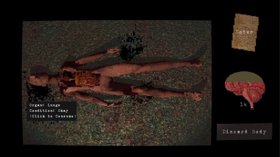 Le gameplay minimaliste de McGrath permet souvent à ses jeux de fonctionner comme des poèmes interactifs ; dans son attrait morbide pour la carcasse et l’épure de sa structure, bad flesh a ainsi bien quelque chose de baudelairien. Le jeu ne s’explique pas vraiment, mais il y est question d’un père, son enfant, et de corps à dévorer en évitant de goûter à la « chair mauvaise ». Un drôle de banquet façon Cronenberg, dont le croquant doit beaucoup au sound design bien dérangeant.