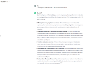 Bien que l’IA apporte de nombreux avantages à l’industrie cinématographique, elle soulève également des questions éthiques et artistiques. Certains craignent que l’automatisation de certaines tâches créatives puisse conduire à une uniformité dans la production cinématographique et compromettre l’originalité artistique. Cependant, lorsque bien utilisée, l’IA peut être un outil puissant pour améliorer la créativité et l’efficacité dans le processus de production cinématographique. C.GPT