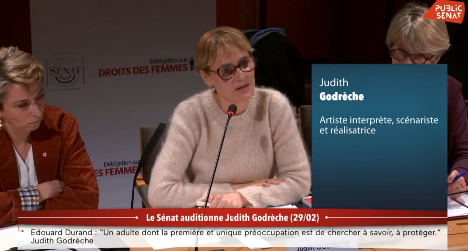 Judith Godrèche a plaidé ce jeudi 29 février devant les sénateurs pour une réforme du cinéma afin de protéger les jeunes actrices des violences sexuelles, et a élargi son combat à l’ensemble des enfants victimes d’inceste ou d’agressions. Devenue la figure de proue de la lutte contre les violences sexuelles sur les enfants depuis qu’elle a porté plainte contre les cinéastes Benoît Jacquot et Jacques Doillon pour faits remontant à son adolescence, l’actrice était entendue par la délégation au droit des femmes du Sénat. Une première pour une artiste, et l’occasion de donner un relais politique à son combat, six jours après son discours à la cérémonie des César. « Je me permets de vous demander de constituer une commission d’enquête sur les violences sexuelles et sexistes dans le milieu du cinéma », a déclaré celle qui décrit le 7ᵉ art comme « une famille où on ne peut pas dénoncer, où on ne sait pas à qui parler ».
