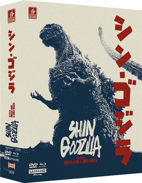 Contenu et BonusÉdition limité et numérotée à 1000 exemplaires Boîtier Digipack avec fourreau Contient : – le 4K Ultra HD du film (HDR10) – le Blu-ray du film – un Blu-ray de bonus – le DVD du film (Dolby Digital) – un livret (16 pages)Blu-ray du film: Commentaire audio Interview de Shinji Higuchi Bêtisier Bandes-annonces Blu-ray bonus : Making of Modules sur les effets spéciaux Conférence de presse « Godzilla Project » by I:Cube |