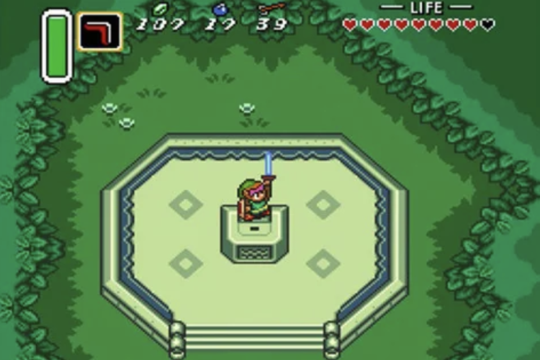 Le joueur doit cette fois suivre une trajectoire plus rectiligne : un découpage du monde en 8 zones distinctes, la quête des trois pendentifs liés à la Triforce, Excalibur et la révélation du héros, le Monde des Ténèbres (version alternative d’Hyrule où Ganon a conquis la Triforce), la quête des 7 cristaux (ou 7 sages), l’affrontement final. Pour progresser, chaque donjon (avec sa carte, sa boussole et sa clé du boss) donne accès à un nouvel item qui permettra à Link d’ouvrir la voie à une nouvelle zone alors inexplorée. Une vision plus dirigiste de l’aventure mais ô combien efficace et qui permet au jeu de déployer ses thèmes et mythes dans un scénario imparable (modèle sur lequel se base l’intégralité de la saga).