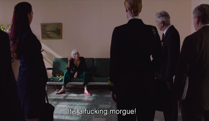 Twin Peaks a toujours été drôle, malgré toutes les horreurs qui s’y déroulent, et il n’y avait aucune raison que ça change. Et même, fatalement, quand on ne s’y attend pas. Lorsque Lynch révèle la très mystérieuse Diane, dont on se demandait jusqu’au bout si elle était bien réelle ou pas, il en fait une icône glamour et fucked up qui emmerde tout ce qui l’entoure. Au bout de ses innombrables fuck, il y a ce mythique passage à la morgue où, isolée aussi visuellement que physiquement, elle tente de s’en griller une et brise la routine cintrée du FBI. Une envie d’envoyer bouler contagieuse et irrésistible. Queen Diane. J.M.