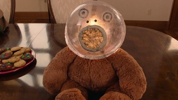Si on trouvait déjà que cette saison 3 de Twin Peaks avait un léger goût de Dumbland (cette satire Lynchienne animée et absurde de l’Amérique), la présence de ce Teddy Bear totalement creepy fait carrément dans l’autocitation. Car au lieu d’une tête d’ours, Lynch lui a collé un globe en plastique à l’effigie de l’anti-héros de sa création culte. La scène qui lui est dédiée aurait d’ailleurs pu en être tirée: mélange de violence, d’expérimentation visuelle et sonore cauchemardesque et politique. M.B.