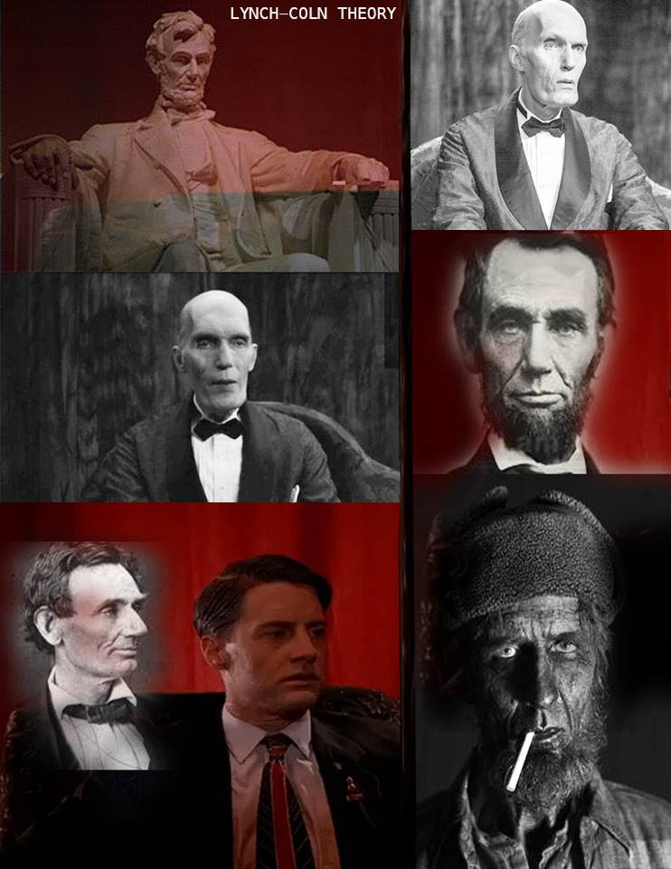 «Deux sosies de Lincoln apparaissent dans Twin Peaks: The Return de façon extrêmement évidente sous le signe du feu: Le «Fireman», géant à la mâchoire carrée (comme une barbe), reprenant la célèbre pose du Lincoln statufié dans son fauteuil. Et le trappeur au visage noirci, arborant le collier de barbe touffu, quémandant du feu d’une voix rocailleuse, avant d’enfoncer ses doigts dans les crânes innocents. Ce sont les fondations d’une Amérique schizophrène que David Lynch convoque finalement, celles d’une nation néfaste se rêvant pure… Cette présence des deux Lincoln donne une dimension mythique et historique à la série. Et l’agent Dale Cooper peut nous apparaître désormais comme un fils de Lincoln, missionné pour recoller la faille ouverte par la bombe.» B.M.