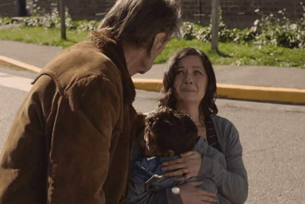 Une scène inoubliable, d’une tristesse inconsolable. Quand Richard Horne – toujours cette ordure – conduit son pick up comme un fou dans la ville de Twin Peaks et écrase un petit enfant qui traversait un passage piéton alors qu’il jouait avec sa mère. Harry Dean Stanton/Carl, alors qu’il paraissait attendre tranquillement sa propre mort au milieu d’un parc, assiste médusé à une scène d’atroce violence. Une femme – jouée par la Donna Hayward de Fire Walk With Me – inconsolable pleure la mort de son fils. Il s’approche d’elle et lui offre son soutien. Leurs regards se croisent et Stanton ne peut lui offrir qu’un peu de compassion. M.B.